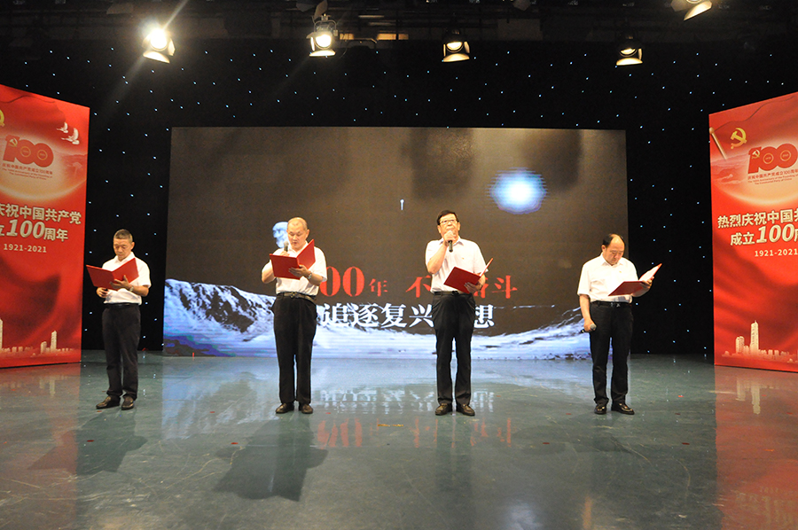 华体会huatihui(中国)集团党委书记、董事长崔洪金带领集团部分党员参加此次活动。并以工商联会员企业党委委员身份参演了经典诵读《永远跟党走》,声情并茂、慷慨激昂,传播着百年党史红色经典作品的独特魅力,触动着每一位观众的心弦,赢得现场阵阵掌声。