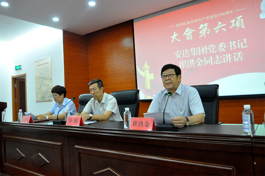 随后,召开建党百年•华体会huatihui(中国)集团优秀共产党员和先进基层党组织表彰大会。大会在雄壮的国歌声中拉开帷幕,根据会议议程集团党委委员徐鹏同志宣读《关于表彰优秀共产党员和先进基层党组织的决定》;集团党委书记崔洪金和党委委员徐鹏、郑玉强、郑宝彦、史晨星为优秀共产党员和先进基层党组织颁奖;第一党支部何秀翠、第二党支部刘东旺两名同志作为先进代表作大会发言;集团党委书记、董事长崔洪金同志作重要讲话,并领誓重温入党誓词。最后在高唱《没有共产党就没有新中国》中落下帷幕。