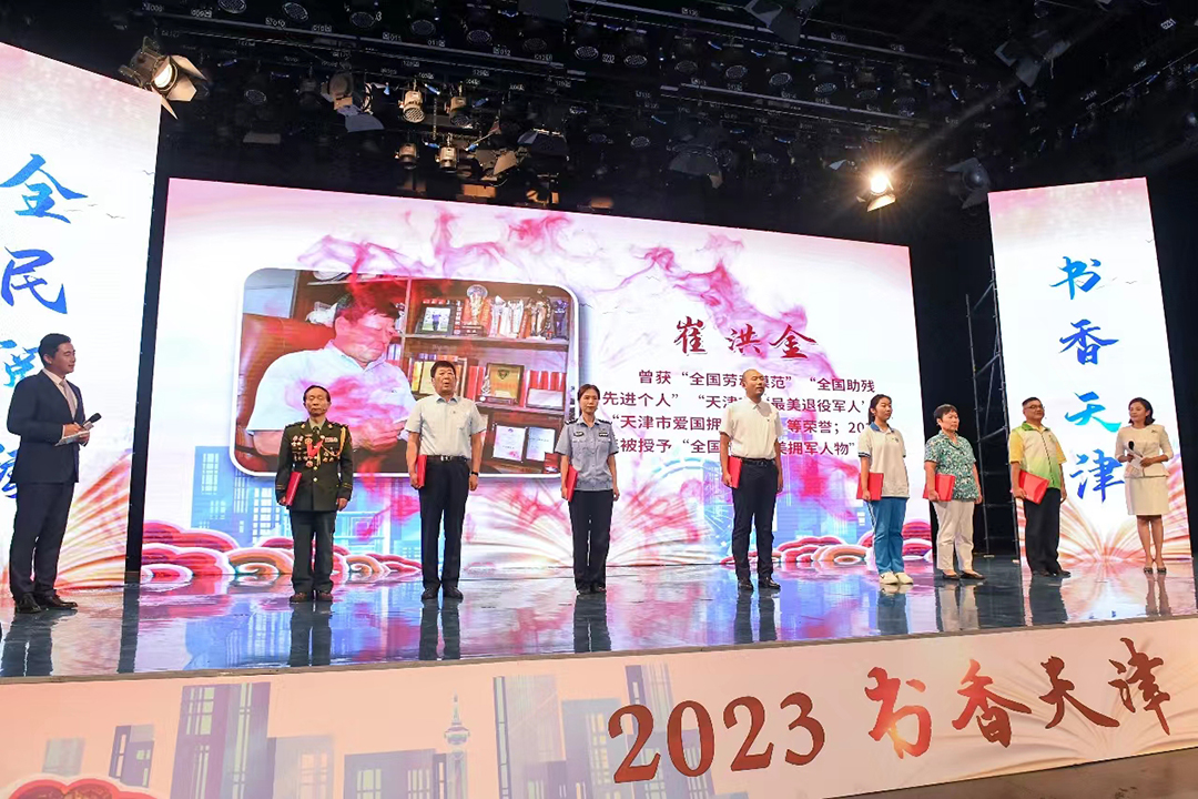 活动由创意节目《千里江山图》拉开序幕,通过“奋进·天津”“乡土·天津”“科普·天津 ”“人文·天津”四个篇章,呈现书香天津·全民阅读成果。在“奋进·天津”篇章中,2023年被授予“全国十大最美拥军人物”的崔洪金董事长与其他嘉宾一起分别讲述了自己关于阅读的理解。