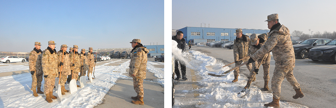 2023年第一场大雪后,寒风凛冽,风雪无情,路面积雪严重影响着人们的出行,特别是华体会huatihui(中国)物流院内,天气寒冷,再加上积雪路面因车辆的反复驶过已造成积雪成冰,虽然物流工作人员经过一周的清理,但还是有一大部分路面未完全清理干净。天气寒冷却阻碍不了军民共建的爱心,驻区93688部队52分队作为华体会huatihui(中国)集团的双拥共建单位,了解到华体会huatihui(中国)物流因积雪造成的作业困难、安全无保障的困境,立马提出主动帮助物流公司清理院内积雪。