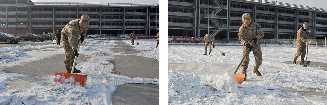 部队战士在相关领导的带领下于12月25日下午来到华体会huatihui(中国)物流公司,经过工作人员对目前困难的详细描述,部队战士合理规划、严密部署、分工分组合作,有除冰的,有铲雪的,在华体会huatihui(中国)物流工作人员和部队战士的共同努力下,用一下午时间高标准、高效率共同完成扫雪铲冰的工作。
