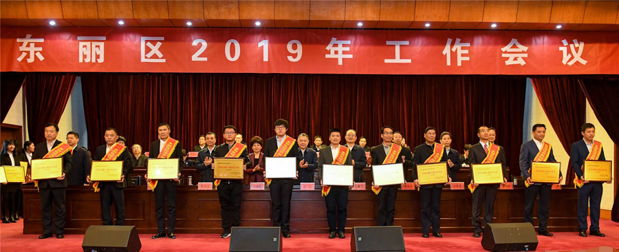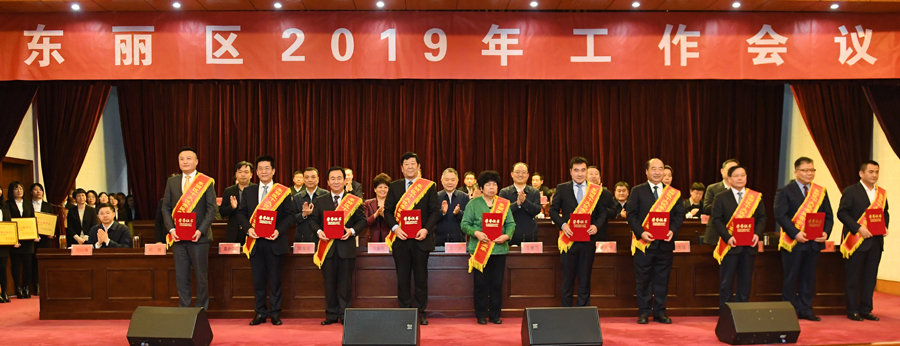 2月20日下午,我区召开2019年工作会议,认真贯彻习近平新时代中国特色社会主义思想和党的十九大精神,深入落实习近平总书记在天津考察工作和京津冀协同发展座谈会上的重要讲话精神,按照市委十一届五次全会和区委十一届九次全会要求,对今年全区各项重点工作任务进行再动员、再部署,进一步统一思想、凝心聚力,顽强拼搏、扎实苦干,奋力开启东丽绿色高质量发展新征程,推动美丽东丽建设再上新水平。区委书记夏新,区委副书记、区长孔德昌,区人大常委会主任孙富霞,区政协主席李大勇等区领导出席,华体会huatihui(中国)集团党委书记董事长崔洪金作为十大优秀民营企业家之一参会并上台领奖。