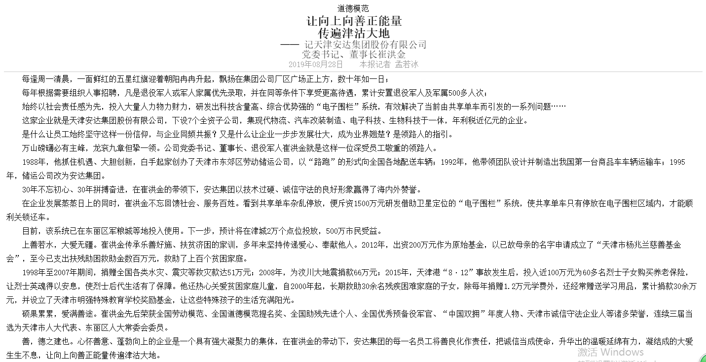 《天津日报》刊发 让向上向善正能量传遍津沽大地-记华体会体育党委书记董事长崔洪金